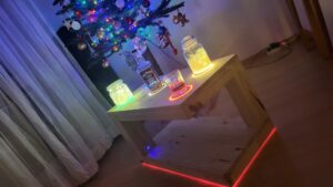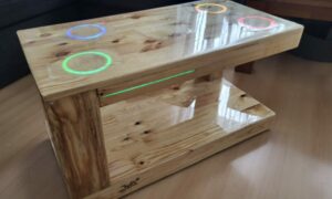 Taki sobie zlew zrobiony z dwóch opon i kilku deseczek. Trochę wkrętów. Lakierobejca. Zlew jednokomorowy. Bateria. Kilka działań „flexem” i gotowe. Najgorsze było cięcie opony ze względu na te druciki wewnątrz. Kilka tarcz poszło na to. Tak szybko się ścierały.